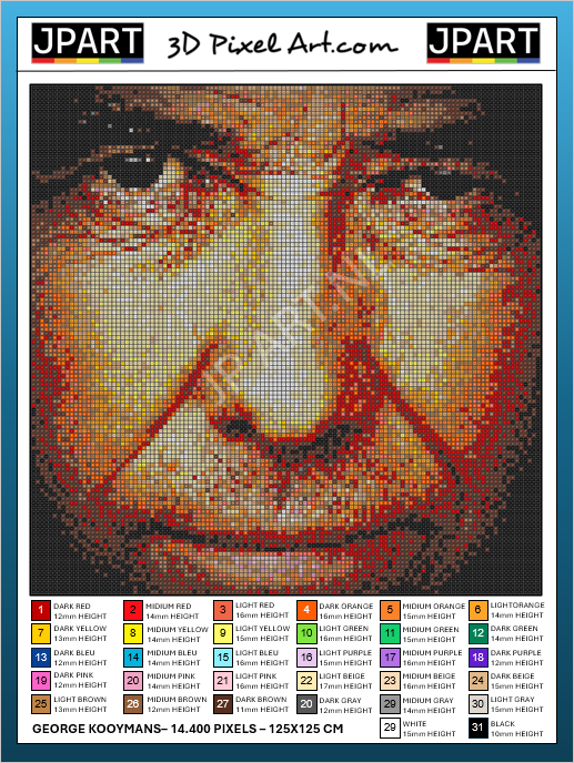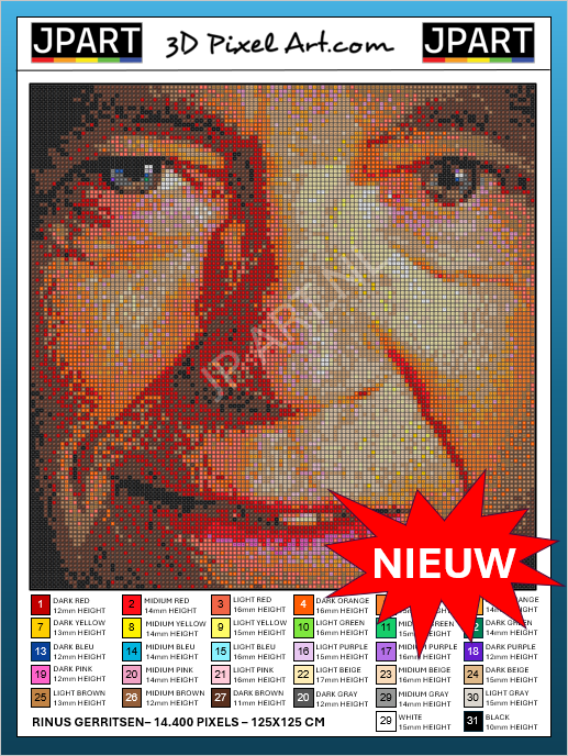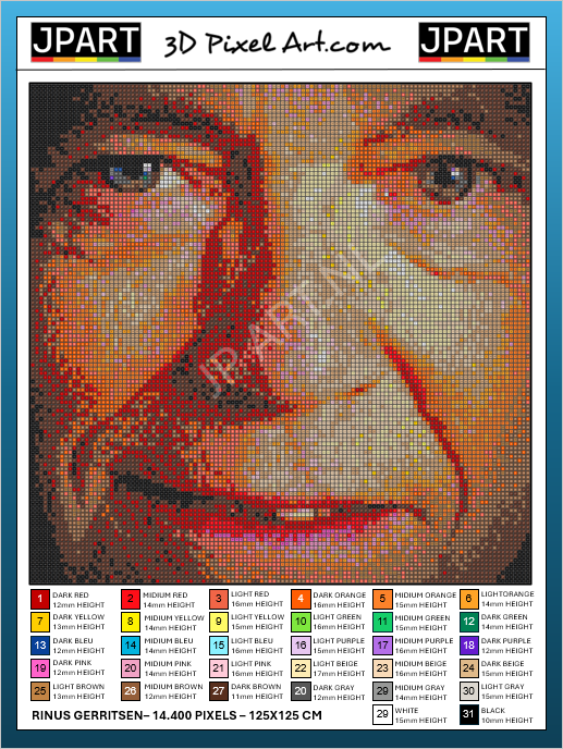 “Ik maak verschillende voorbeeldontwerpen als inspiratie voor toekomstige kunstwerken. Deze ontwerpen helpen mij om nieuwe ideeën te verkennen, kleurencombinaties te testen en unieke composities te ontwikkelen. Niet elk voorbeeld wordt direct omgezet in een fysiek 3D-pixel art kunstwerk, maar ze vormen de basis voor verdere uitwerking en experimenten. Door deze werkwijze kan ik mijn techniek blijven verbeteren en steeds vernieuwende creaties realiseren. Sommige ontwerpen worden later volledig uitgewerkt en geprint, terwijl andere puur dienen als creatieve oefening en inspiratiebron.”