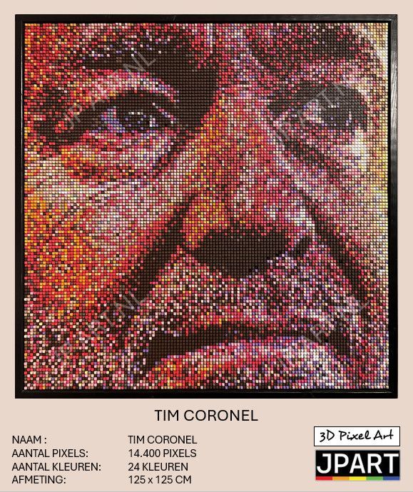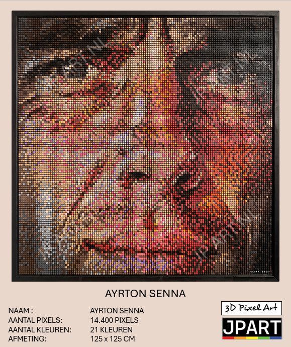 My 3D pixel art is a combination of precision, technique and creativity. Each work starts as a digital design, in which I carefully compose the colours, shapes and structures. The pixels are then printed individually and assembled by hand. This process requires patience and craftsmanship: a single artwork can take up to 60 hours to complete.