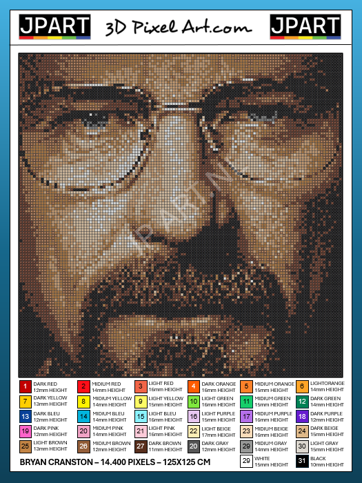 “Ik maak verschillende voorbeeldontwerpen als inspiratie voor toekomstige kunstwerken. Deze ontwerpen helpen mij om nieuwe ideeën te verkennen, kleurencombinaties te testen en unieke composities te ontwikkelen. Niet elk voorbeeld wordt direct omgezet in een fysiek 3D-pixel art kunstwerk, maar ze vormen de basis voor verdere uitwerking en experimenten. Door deze werkwijze kan ik mijn techniek blijven verbeteren en steeds vernieuwende creaties realiseren. Sommige ontwerpen worden later volledig uitgewerkt en geprint, terwijl andere puur dienen als creatieve oefening en inspiratiebron.”