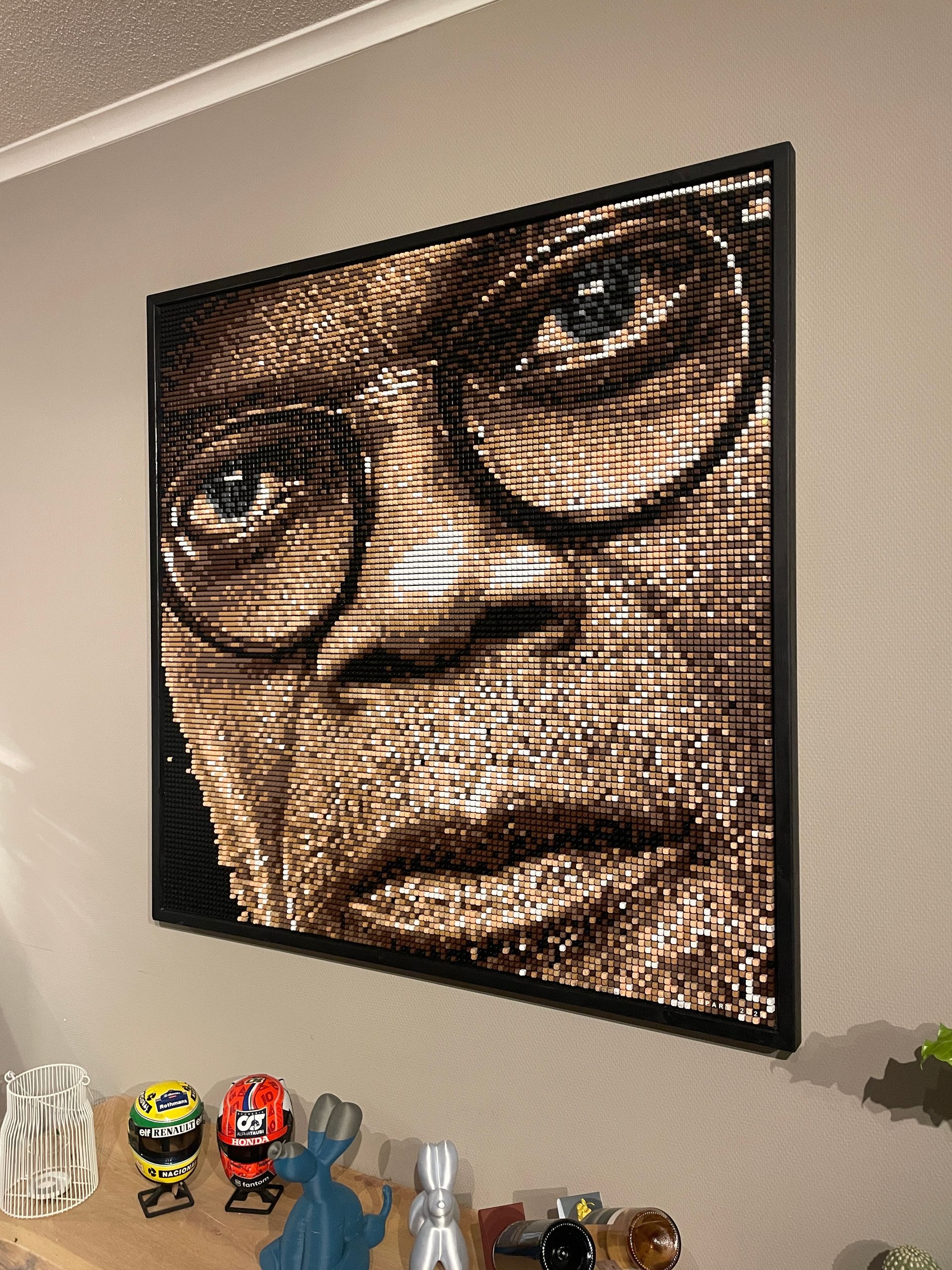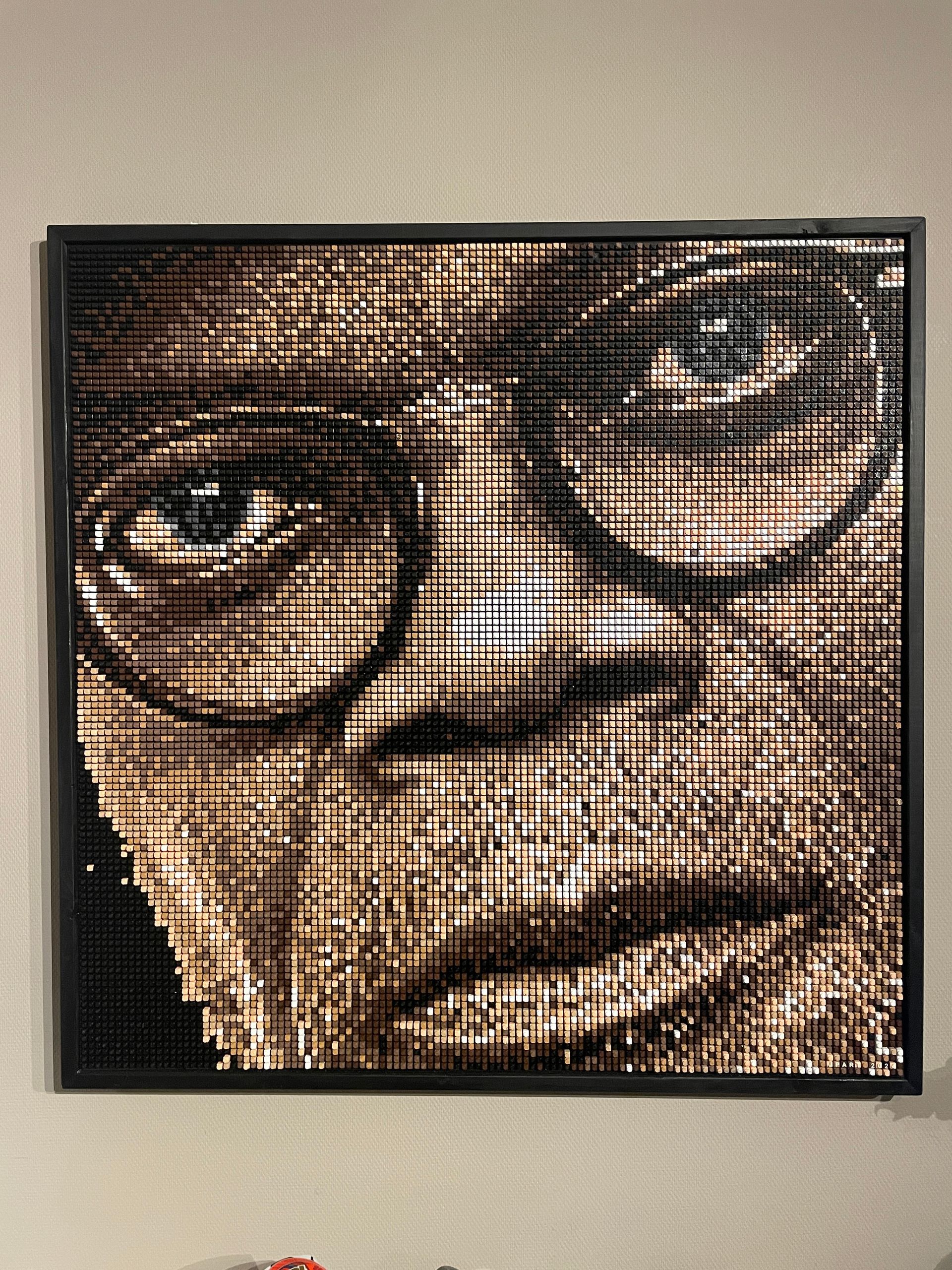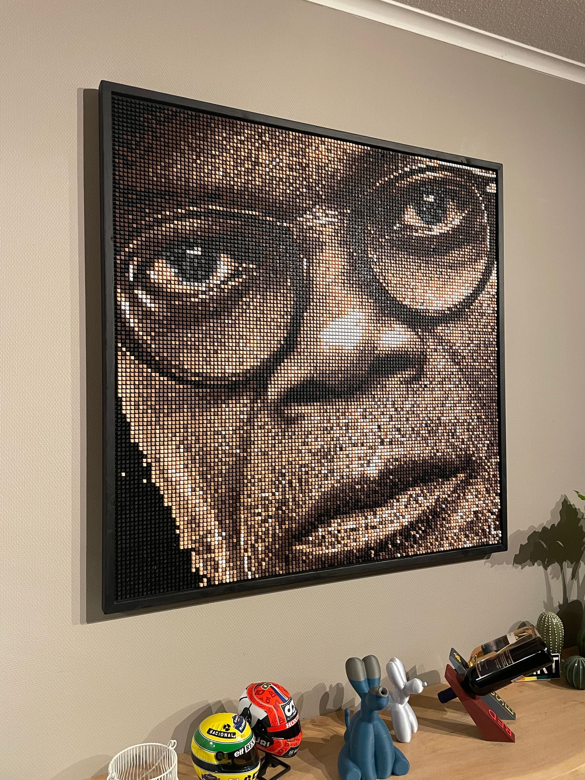 Dit unieke 3D-pixel art kunstwerk, getiteld “The Iconic Look”, brengt de krachtige uitstraling van Samuel L. Jackson tot leven. Opgebouwd uit 14.400 individuele pixels in 9 verschillende kleuren, creëert dit portret een indrukwekkend reliëfeffect dat diepte en realisme toevoegt.